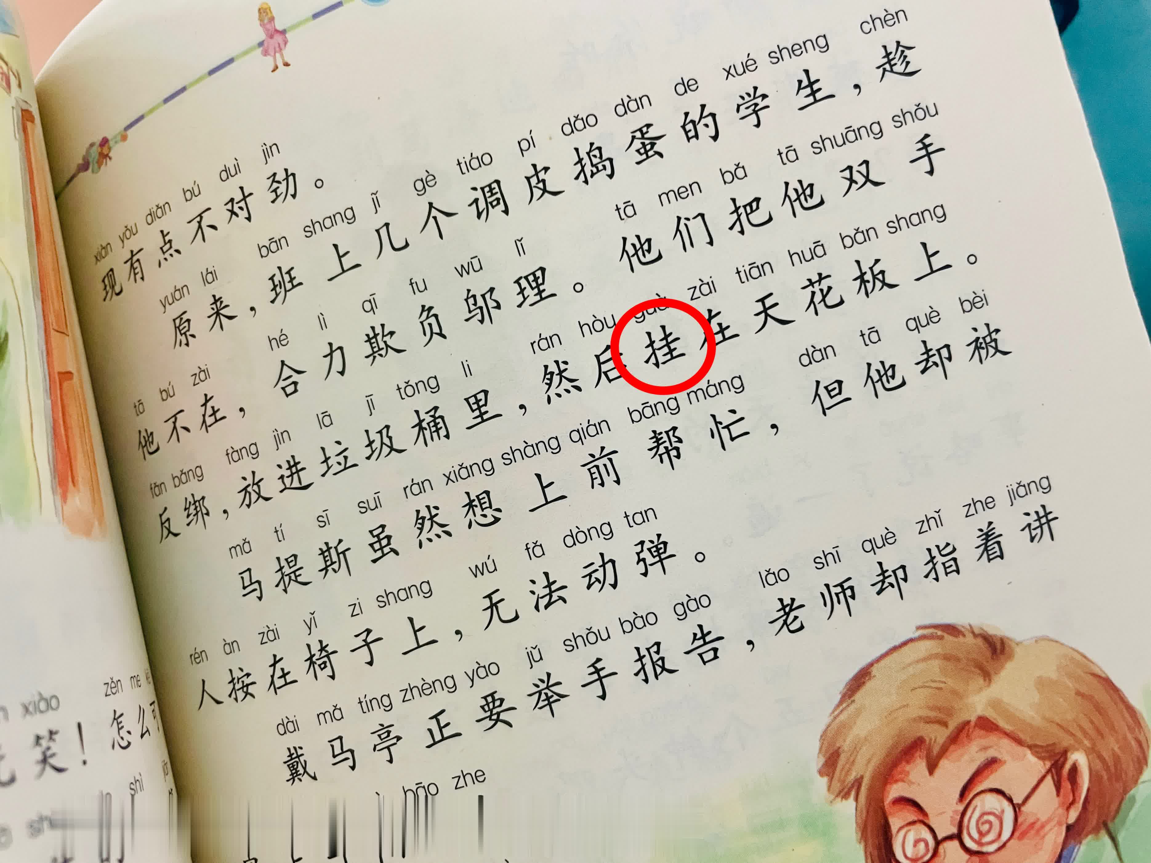 于是,孩子在第103页看到“挂”字又分析起来,想到了“桂”。赶紧解释“挂”是用手的动作,所以是提手旁,“桂”是桂花树的桂,是植物,所以是木字旁。